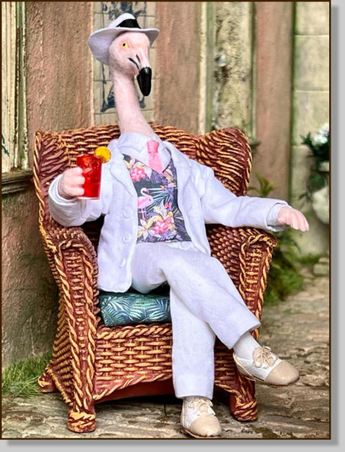 Cocktail schlürfender Flamingo im Panama Look / Cocktail sipping Flamingo im Panama Look