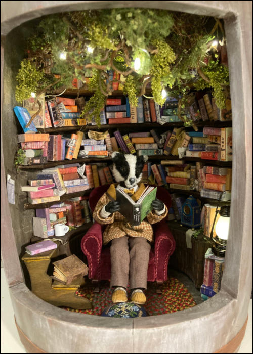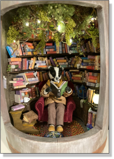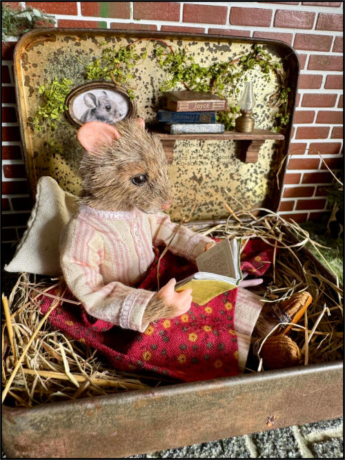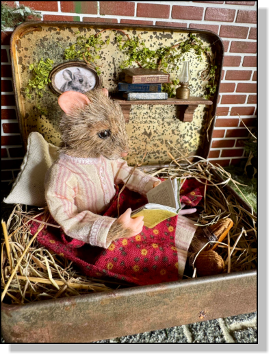 Lesemaus in Blechdose,eingekuschelt im Strohbett.Reading Mouse in tin can, nestled in a bed of straw