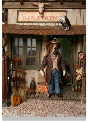 ein schneidiger Cowboy vor der Türe einer