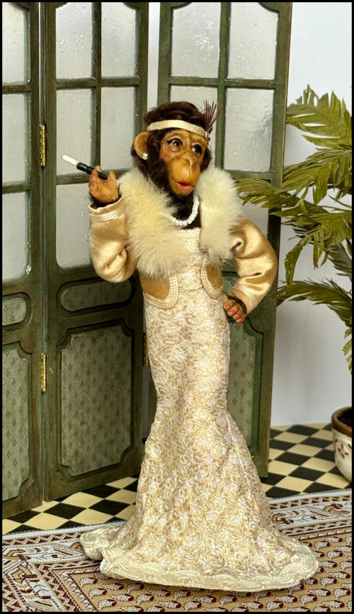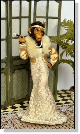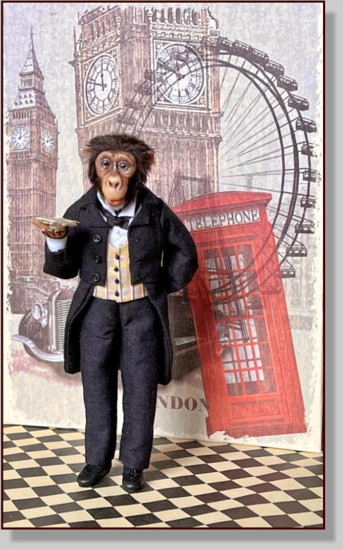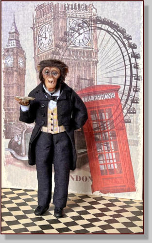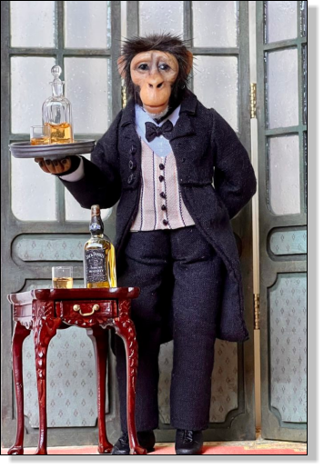 Die Affen , 1x Gorilla -Ich nenne ihn Der General , und Schimpansen Butler . AusgestattetMit Whisky +Gläser vom Glasbläser Gerd Felka.