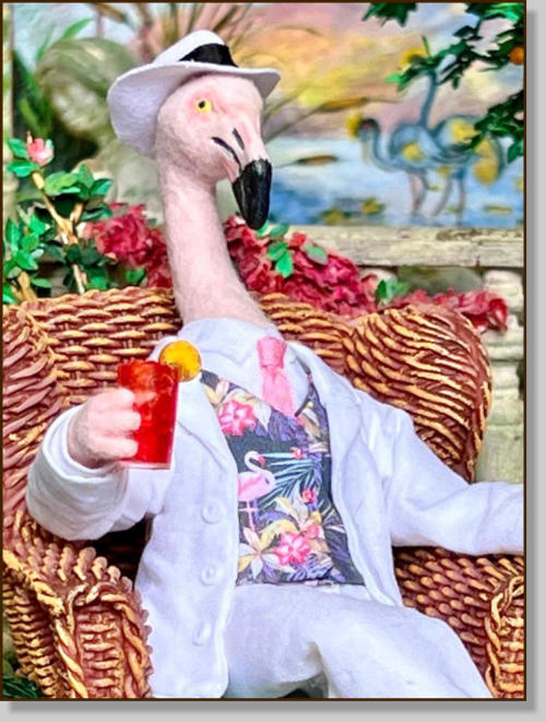Cocktail schlürfender Flamingo im Panama Look / Cocktail sipping Flamingo im Panama Look