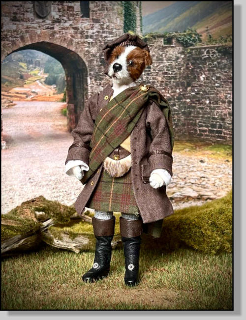 Der Highlander, ein Parson Russel trifft auf Lallybroch Castle ein . / The Highlander , a Parson Russel arrives at Lollybroch castle