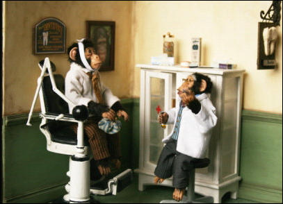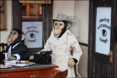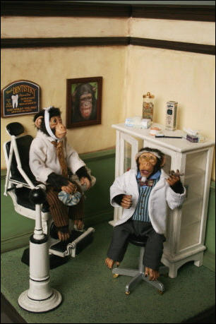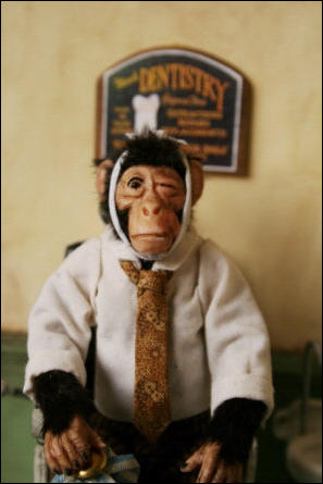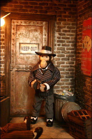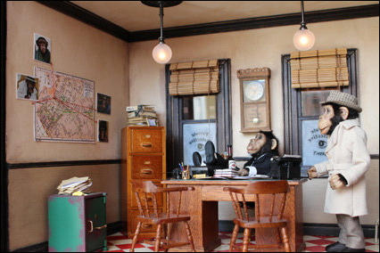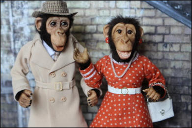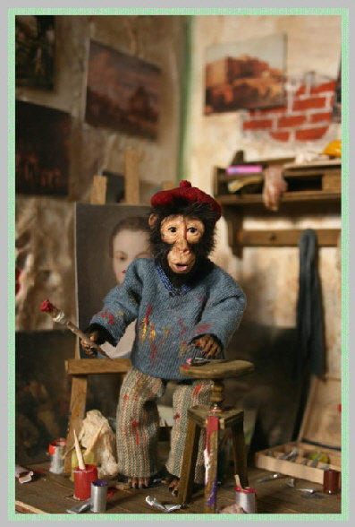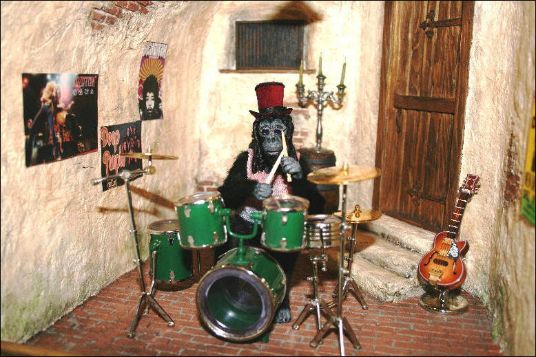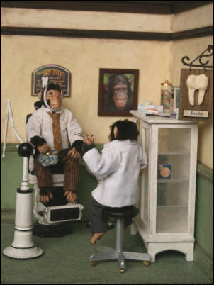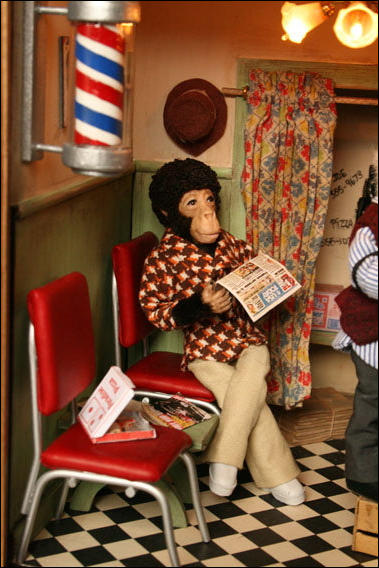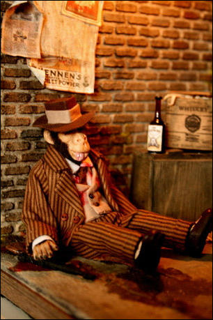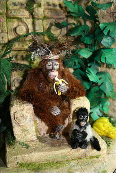 Den Schaukasten und die Äffchen habe ich angefertigt, die vielen Accessoires wurden von Jutta