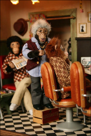 Jackson five sitzt auf dem Stuhl und wartet bis er dran kommt !! Der Orang wird gerade gekämmt